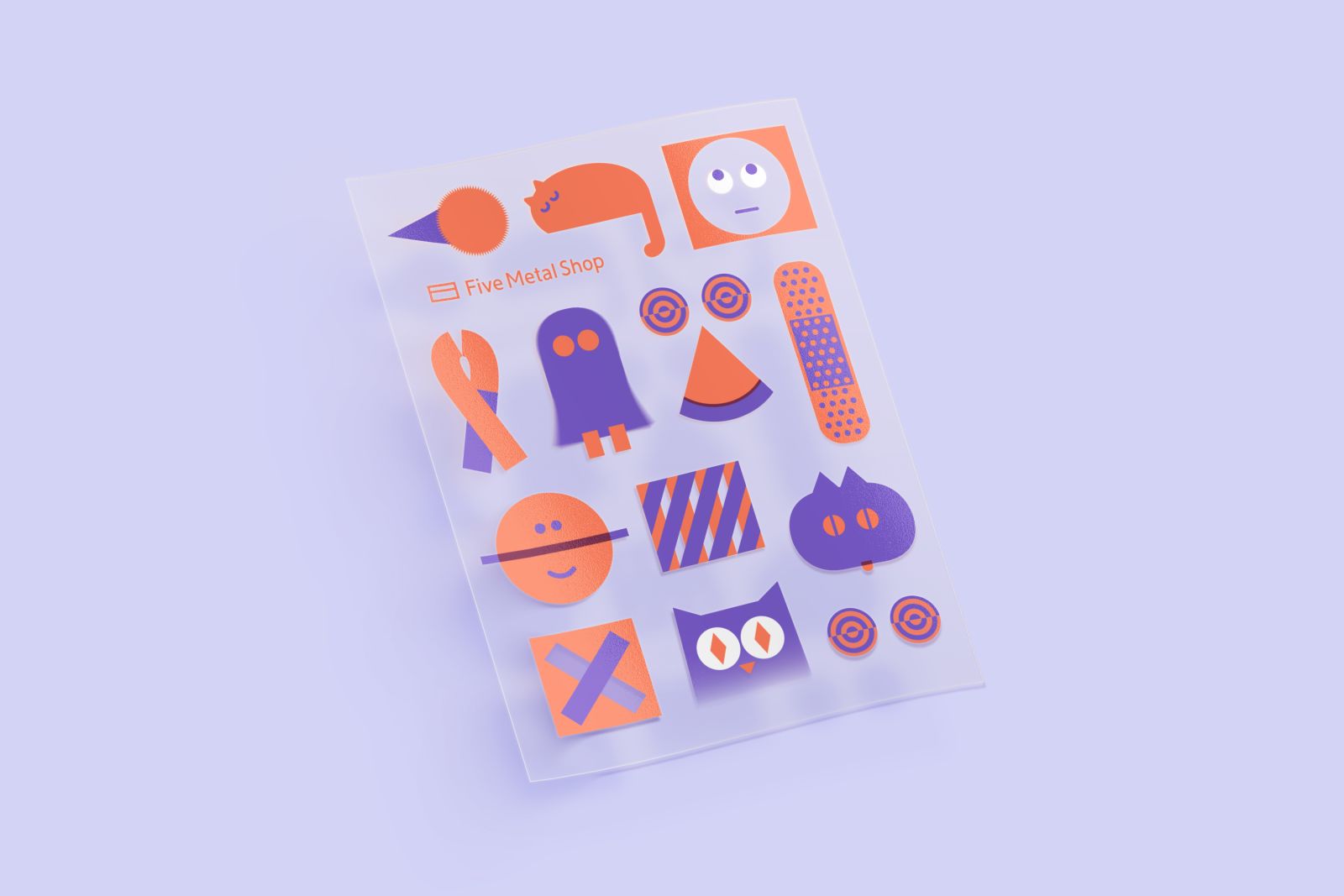 ☞ 霧面半透明貼紙,Pantone 特殊印刷色 螢光粉橘 / 螢光粉紫